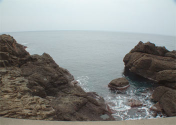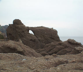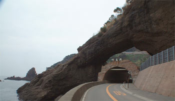 海岸にせり出した岩を、くりぬいたような、小さなトンネルがやたら多くあります。