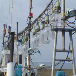 かに漁は遠方に、夏場のいか漁はすぐ真近に漁火を