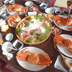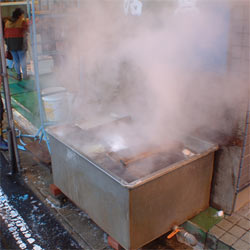 帰り道、かにをゆでる釜の湯気が、右に左に、ほんのり