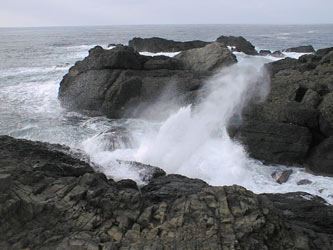 バズーカ砲のように、潮が、7〜8m吹き上がって