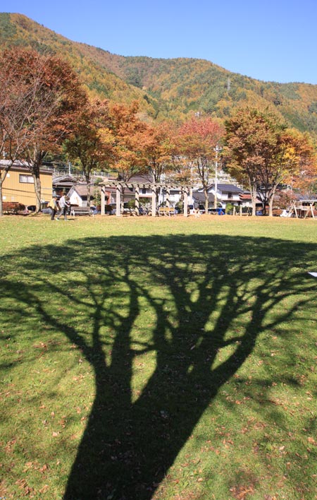 駐車場横の公園で 芝生のうえにのびた、木の影が印象的でした。 |