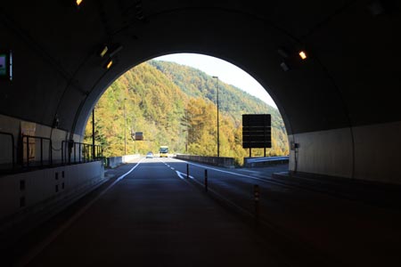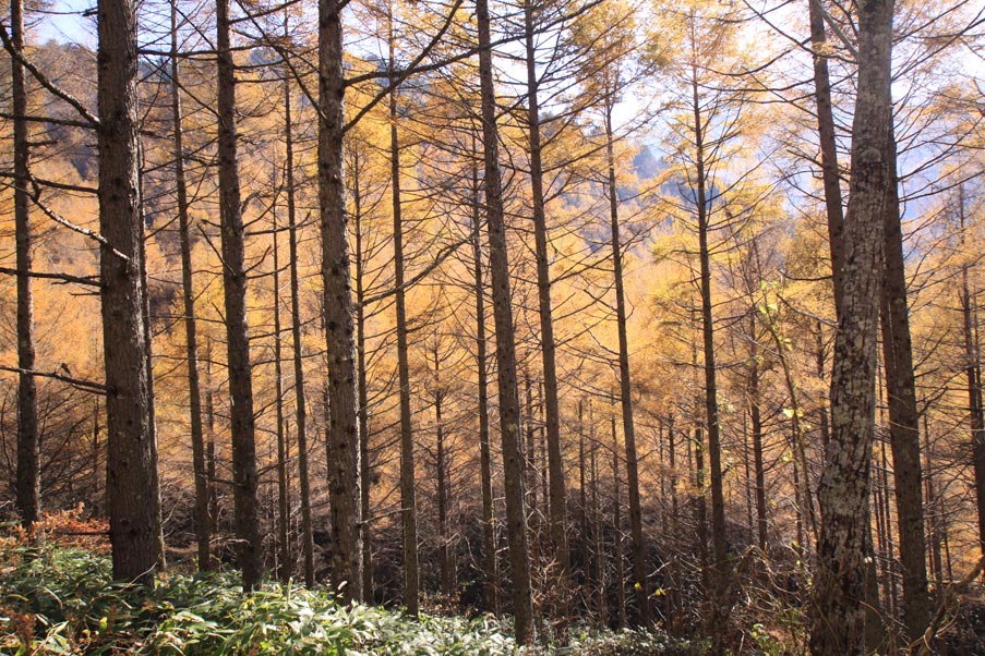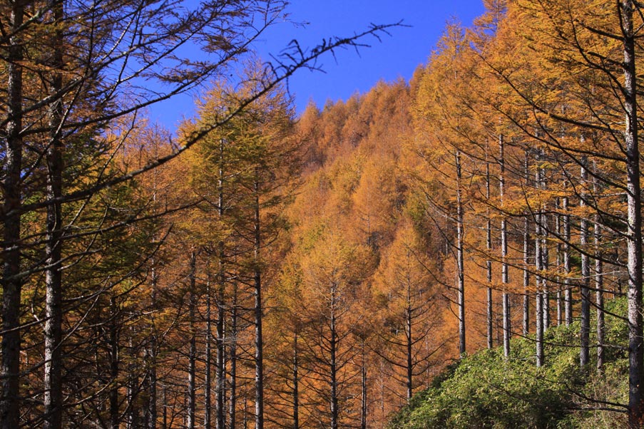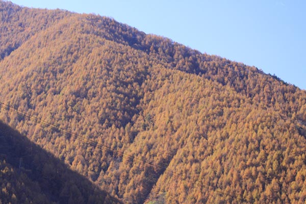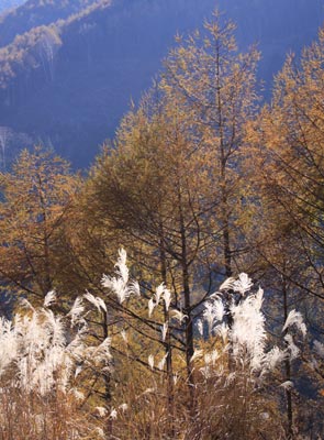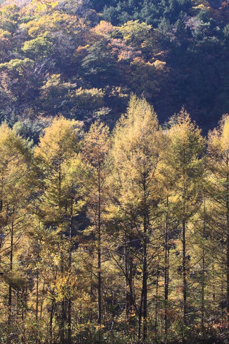 やはり昔の記憶通り、峠の落葉松林はきれいでした。 このまま伊那へ下ろうとしたのですが、がけ崩れのため通行止め。 やむなく引き返しトンネルをくぐることにしました。 |