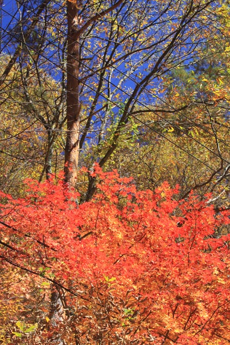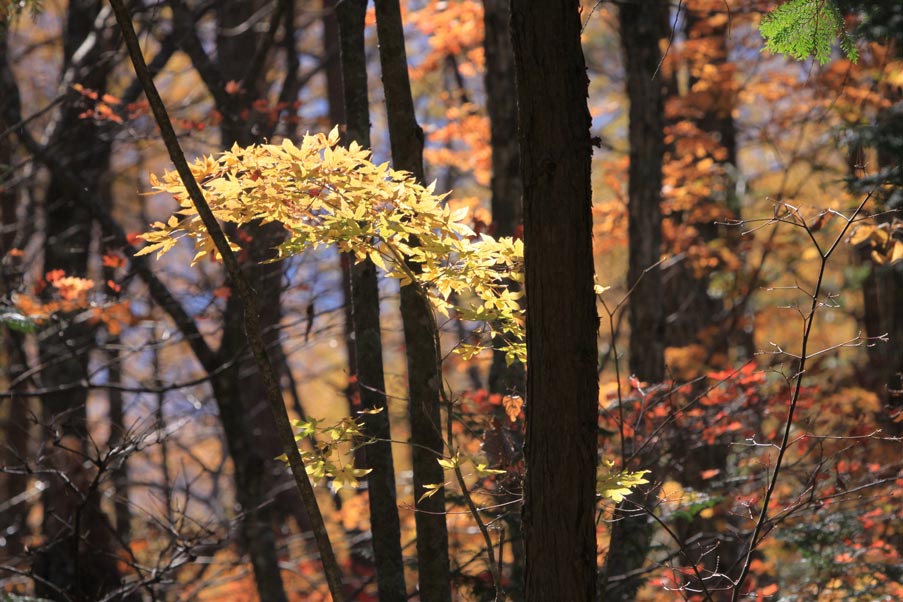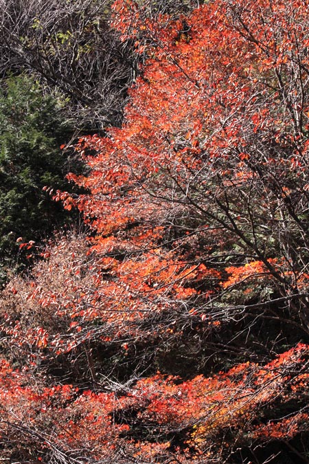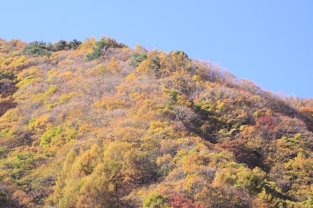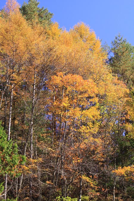 10月は結構仕事が忙しく、なかなか出かけられませんでした。 それにお天気にまできらわれ、土・日曜日には晴れだと仕事。 ひまな日は雨・・・・ そうこうしているうちに紅葉前線はどんどん下がってくるし・・・ 家族とも予定があわず、久々に一人で出かけることにしました。 行先は久々の木曽路 木曽路の入口はまだまだ青葉。 |
